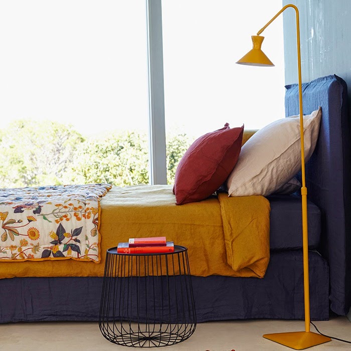 Comme toute couleur un peu flashy, on retrouve beaucoup ce jaune curry (ainsi que le jaune moutarde, toujours d’actualités) en accessoires (coussins, linge, objets, etc…).