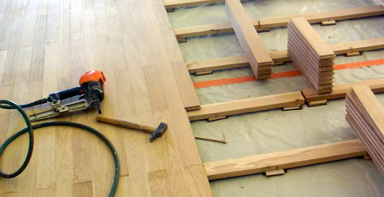 La technique la plus ancienne, dite pose « traditionnelle » consiste à clouer le parquet à des lambourdes ou des solives. C’est la solution utilisée dans le cas d’un parquet de plus 20 mm.